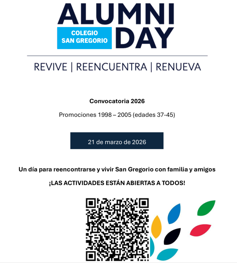 En concreto, a esta convocatoria están invitados los nacidos entre 1980 y 1987. La jornada está pensada para revivir recuerdos, reencontrarse con antiguos compañeros y volver a sentir el San Gregorio como casa, esta vez acompañados de familia y amigos. Podréis encontrar más información del desarrollo de la jornada en el programa adjunto.
